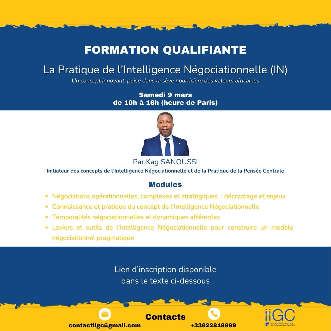 Après le succès de la session de sensibilisation du samedi 24 février, l’équipe de l’IIGC vous convie à une formation inédite et qualifiante sur La Pratique de l’Intelligence Négociationnelle:
