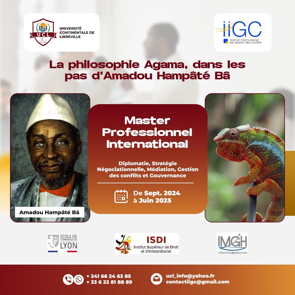 À partir d’observations et d’expériences vécues, combinées à une synthèse de plusieurs sciences et disciplines, le Master Professionnel International (MPI) en « Diplomatie, Stratégie Négociationnelle, Médiation, Gestion des Conflits et Gouvernance » permet aux apprenants de mieux intégrer les leviers de la philosophie Agama, afin de connaître une transformation significative sur les plans professionnel et personnel.