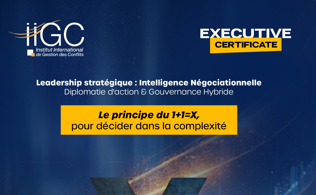 L’institut International de Gestion des Conflits (IIGC), de la Responsabilité Sociétale des Entreprises et des Organisations, est un regroupement d’experts (Universitaires, Chefs d’entreprises, Officiers supérieurs, Médecins, Consultants, fonctionnaires, cadres dirigeants, Coachs d’entreprises…) dans plusieurs domaines de compétences et répartis sur plusieurs continents. Il promeut des pratiques innovantes pour Co-construire les solutions les mieux adaptées aux écosystèmes des acteurs.